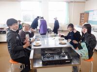 ジャガイモの皮むきはなかなか難しいですが、包丁を使う子もピーラーを使う子もていねいにむいていました。また、時間配分を考え、ジャガイモをゆでながら玉ねぎとベーコンをいためるなど、班の仲間で協力しながら調理しました。