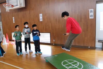 ジャンプボードを使つかって、難しい技にもチャレンジ!