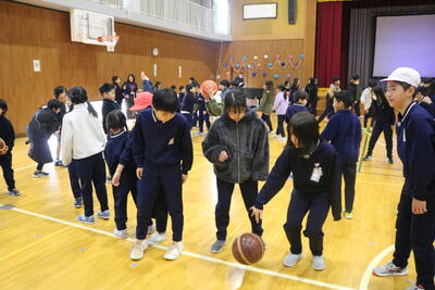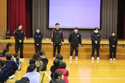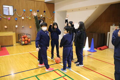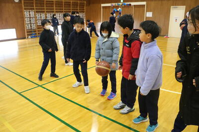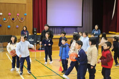 日吉小学校に「新潟アルビレックスBB」のコーチスタッフに来ていただき、訪問授業をしてくださいました。
