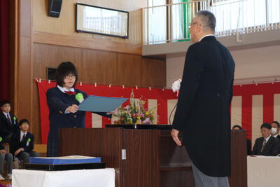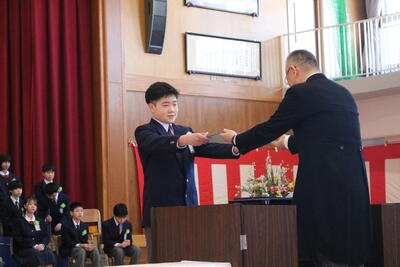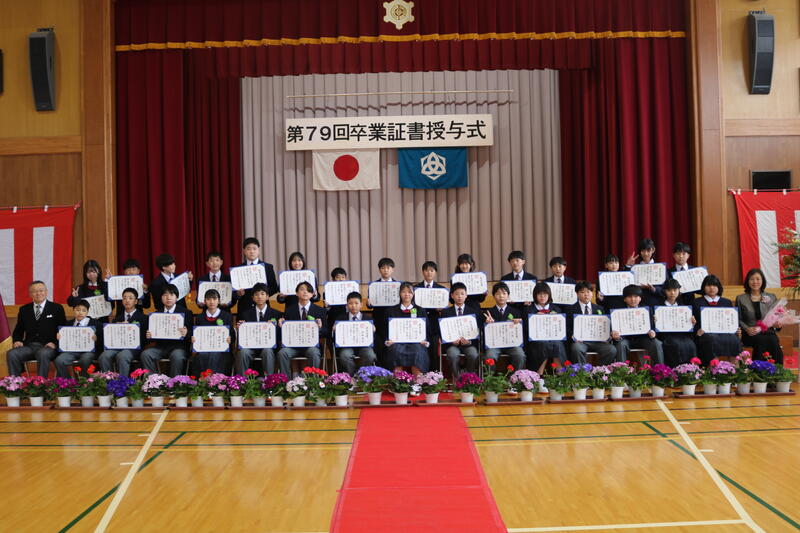 3月18日(水)に第79回卒業証書授与式を挙行しました。入場の時から、一人一人が凛として臨んでおり、とても頼もしく見えました。その表情から、彼らが過ごした6年間、楽しいことも辛いことも、時には皆で頑張って成し遂げたことなど様々な経験をして、大きく成長したのだと感じました。