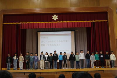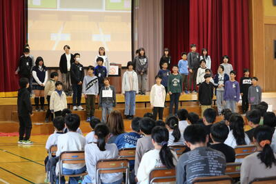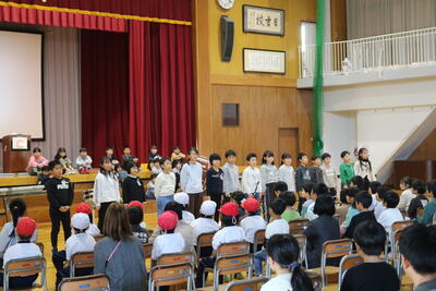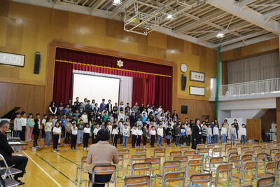 学習発表会の最後には、全校で「麦の歌」、保護者の皆様、地域の皆様と一緒に「ふるさと」を合唱しました。その後、マーチングの発表を行い、日吉小学校最後の学習発表会を終えました。多くの方にご参観いただき、ありがとうございました。