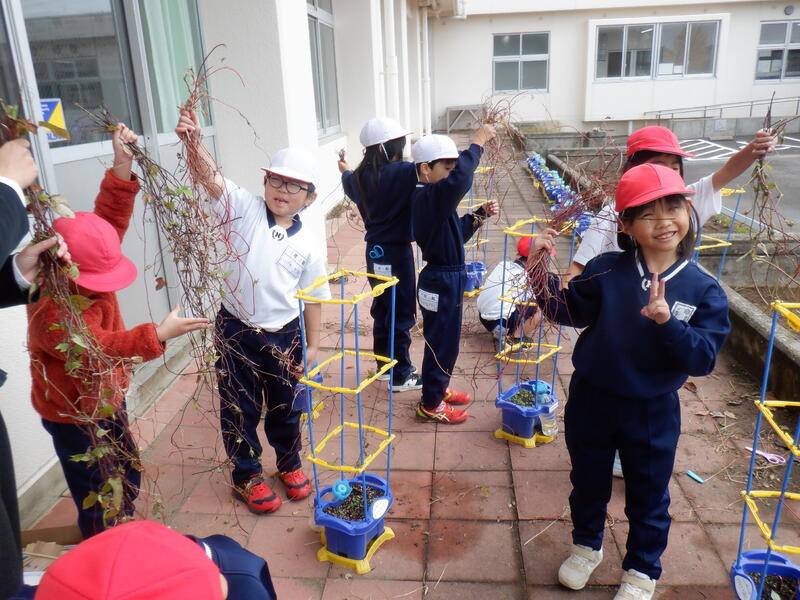 種をようやく取り終わり、あさがおのお片づけをしました。みんなが愛情をこめて育てたので、寂しさもありましたが、きれいな花を咲かせてくれた感謝の気持ちを込めて、最後まで一生懸命、片づけをがんばりました。つるは、リースにする予定です。最後まで目いっぱいあさがおを楽しみます!