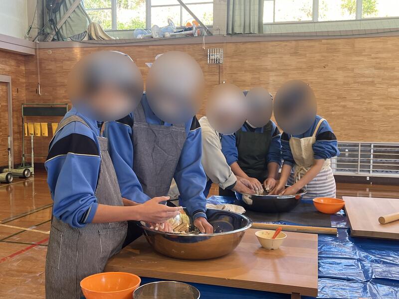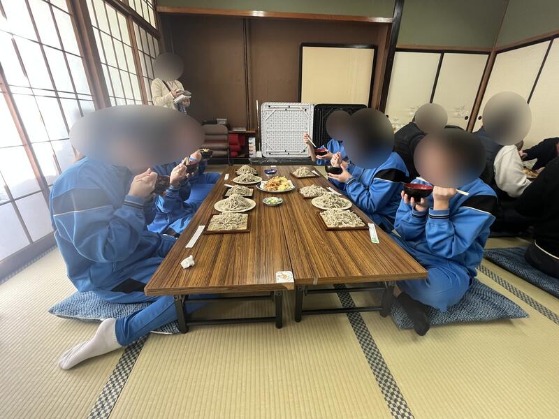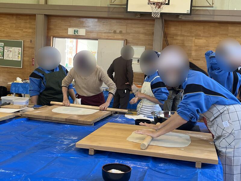 12月20日(土)に半田コミュニティセンター主催の「そば打ち」が行われました。7月の草刈りから始まり、8月の種まき、9月の草刈り、10月のそば刈りと、ボランティア委員会と有志の生徒が、お手伝いさせていただきました。今回は、収穫したそばの実を使って、地域の皆様と一緒に、そば打ちをさせてもらい、おいしいそばをいただきました。