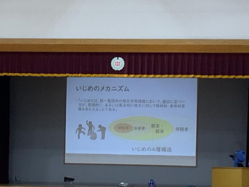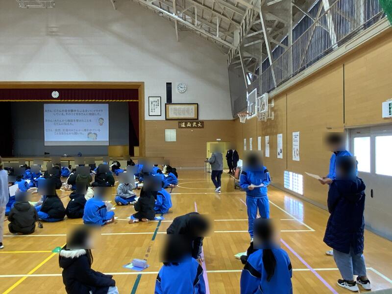 いじめ見逃しゼロスクール集会 投稿日時 : 12/15 サイト管理者 カテゴリ: 枇杷島小学校、半田小学校の6年生を迎えて、「いじめ見逃しゼロスクール集会」が行われました。今日の集会だけでなく、各委員会・学年で「いじめ見逃しゼロ」に向けた取組を行ってきました。今日の集会では、各学校で行っている「いじめ見逃しゼロ」に向けた取組の発表、小学生も含めた縦割り班での話し合い活動を行いました。生徒会本部の劇をとおして、「言葉の伝え方・受け取り方」について意見交換を行い、「言葉のもつ力」について考えました。集会を通して学んだ、「言葉の力をよい方向に使う」ことを意識し、日々の学校生活を送ってほしいと思います。