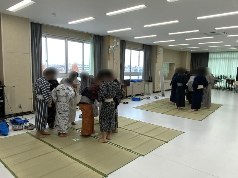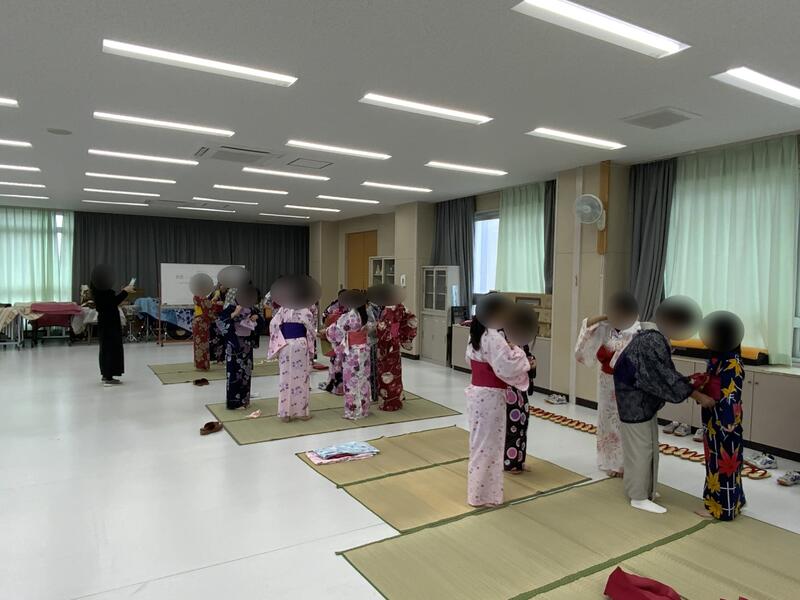 1年生は家庭科の授業で、「和装着装体験」を行いました。和服(浴衣)の着装体験をすることで、和服への理解を深めるというねらいで、NPO法人和装教育国民推進会議新潟県支部から講師の方を招いて、浴衣、雪駄、草履の着装体験をしました。普段、着る機会の少ない和服ですが、貴重な体験をさせていただきました。