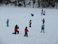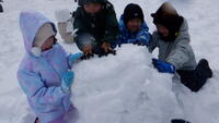 「雪が積もったら体育で雪遊びをしてもいいんじゃないか、、、。」という教師陣のつぶやきから始まり、子どもたちに話をしたところ、大喜びだったことで開催された雪遊びの様子です。