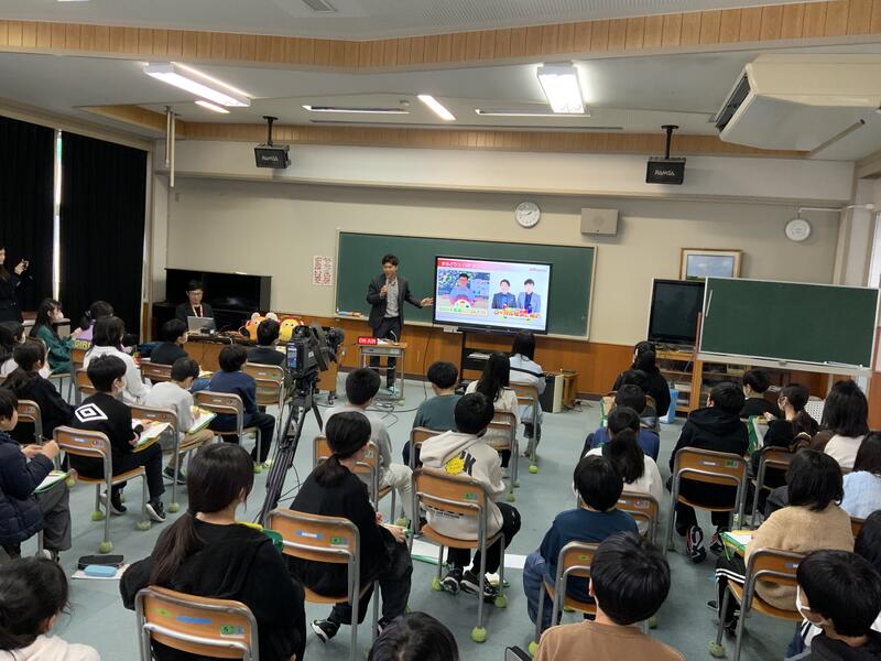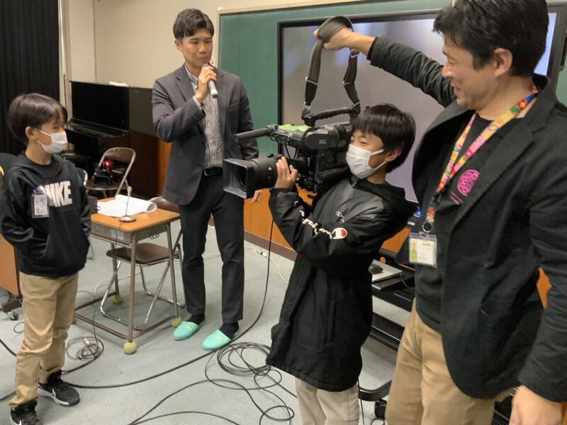 テレビ局では、プロデューサーやカメラマン、アナウンサーなど多くの人が時間をかけて番組を制作していることを詳しく教えていただき、普段では知ることのできないテレビ局の裏側を知ることができました。また、「カメラマン体験」「アナウンサー体験」もさせていただきました。「カメラマン体験」では、実際にテレビ局で使われているカメラを使ってアップとルーズを組み合わせながら映像を撮りました。また、「アナウンサー体験」では、数年前に大角アナウンサーが実際に読んだ原稿を映像に合わせて読む体験をしました。それぞれの体験を通して、いきいきと学ぶ子どもたちの姿がたくさん見られとても良い時間となりました。