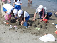 9月10日に、東の輪海岸で、各クラス、グループに分かれて砂遊びを楽しんできました。