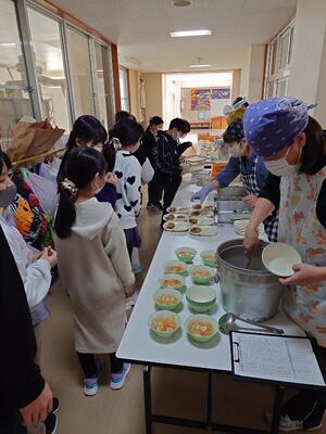 その影響で、今日の給食は、全学年が教室で食べることになりました。
