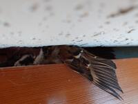 白い粉を振りまいた犯人は、天井の隙間に入り込んだスズメでした。