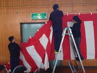 体育館(会場)はもとより、6年生教室、控室、玄関、廊下など、それぞれの分担か所を掃除したり飾り付けしたり…。
