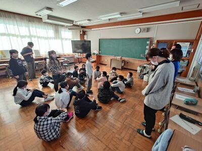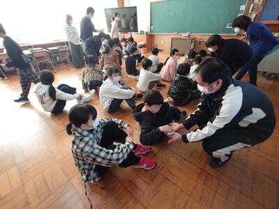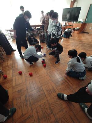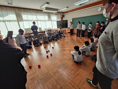 かしわ荘の方からいろいろな話を聞くことができました。また、利用されている方が楽しんでいる「ボッチャ」を教えてもらい、どんなゲームか体験しました。最後には、すてきなプレゼントもいただきました。