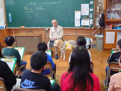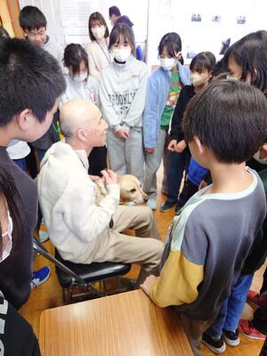 印象に残ったのは、「だれでも得意・不得意がある。私は目が見えないということだけ」「盲導犬の仕事の一つに、主人の命令を無視して主人を守ることがある」「ハーネスを付けているときは仕事中」「失敗したときは一度きつく指導を行うが、できたときはその5倍・6倍と褒めてあげる」というお話でした。