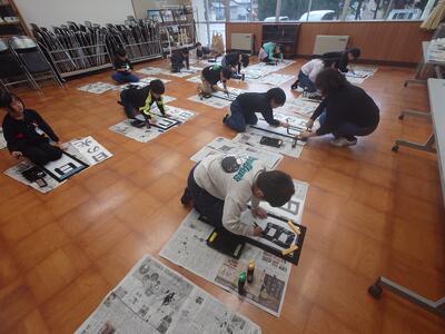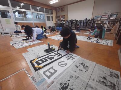 上越国語教育連絡協議会(上国連)主催の書き初め認定会の練習が始まっています。今年は、「題字」がすべて変わったとそうです。とはいえ、子どもたちにとっては目の前の「題字」をお手本を参考に書くのみ。