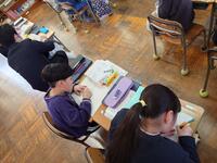 全校で書き初めをしました。1・2年は教室で、3年生以上は体育館に集まって行いました。