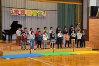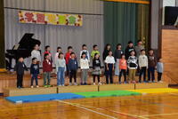 各学年の発表の後には、3~6年生の音楽発表として「He's a Pirate」のリコーダー奏と「ふるさと」の合唱を発表しました。子どもたちの演奏や合唱のすばらしさに涙される地域の方・保護者の方もいらっしゃいました。20名ほどの子どもの演奏・合唱とは思えないほどの迫力ある発表でした。その後、1~6年生全員で「ふるさと(文科省唱歌)」を合唱しました。毎年、歌い継いでいる歌であり、自然豊かな鯨波の風景を思い浮かべることができる素晴らしい合唱となりました。