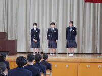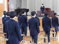 後期の終業式を行いました。1年生、2年生、生徒会本部の代表者が今年度の反省と来年度への決意を発表しました。とても頼もしく感じました。校長講話では、「鏡の法則」 人への接し方は、巡り巡って、鏡に映し出された自分自身に返ってくる」 人にやさしく、尊重し合う、感謝し合う、大切にし合う。松浜中が互いに励まし合って、一人一人が「自分を大切に思える場所」にしていこうとと伝えました。