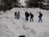 大雪が続いています。先週末の降雪で校地内の積雪も多くなっています。明日以降、やや落ち着く予報となっていますが、通学路はまだまだ歩きにくい状態です。時間に余裕をもって安全に登下校しましょう。