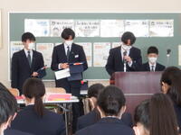 1年生は「初志の会」を行いました。地域や防災学習で学んできたことを発表したり、中学校生活を通じて成長したことを紹介したりして1年間の振り返りを振り返りました。級友や保護者の前で堂々と自分の考えを述べ、1年生の大きな成長を感じました。