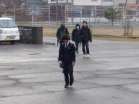 今季一番の寒さの中、元気に登校! 投稿日時 : 13:00 情報担当 カテゴリ: 今朝は今シーズン一番の冷え込みとなりました。吹雪の中、生徒たちは徒歩で通学しています。顔を真っ赤にしながら元気に登校する姿にたくましさを感じます。履き物も冬仕様に変わりつつありますが、まだシューズも目立ちます。気候に応じて履きこなしたいですね。