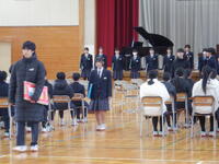 3年生の晴れの門出を全校で祝福したい ~全校予行練習~ 投稿日時 : 16:22 情報担当 明日は3年生の門出の日です。今日は卒業式の予行練習を行いました。全校生徒、教職員全員で本番通りの流れを通して確認しました。全校生徒が温かい雰囲気をつくり、3年生の門出を心を込めて祝福します。また、3年生は最後の給食。一口ずつ味をかみしめていただきました。涙を流しながら食べている生徒もいました ( ;∀;)