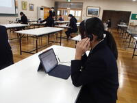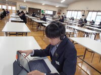 「聴く」「話す」「書く」 CBTテスト(英語)の予行練習 投稿日時 : 14:40 情報担当 令和7年度から、全国学力・学習状況調査がオンライン方式(CBTテスト)で実施されるようになりました。令和8年度は4月22日から3年生で実施する予定です。CBTテストの操作方法に慣れるため、市教委の千原指導主事にもご協力いただき、タブレット端末で英語の予行練習を行いました。今から意欲を高めていきます。