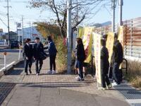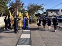 小中合同あいさつ運動は3日目です。校門前の押しボタン信号で止まっていただいた運転手さんにお辞儀してお礼をする生徒たちもいます。うれしい気持ちになったとドライバーの方からお電話をいただくこともあります。地域に誇れる生徒たちです。