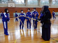 1年生の体育「剣道」の様子です。「礼に始まり礼に終わる」相手を尊重し敬意を示すという武士道の精神を学んでいます。柏崎市剣道連盟から2名の講師をお招きして、剣道の作法や技能を教わりました。