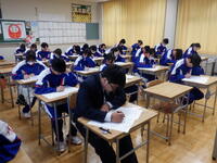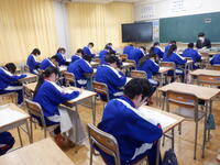 3年生の教科テスト(英語)の様子です。真剣にテストに向かう姿から、3年生の気迫が伝わっています。ゴォーと音を立てて校舎の窓ガラスを揺らす強風に全く動ぜず、集中して取り組んでいました。