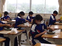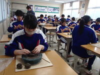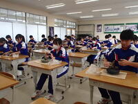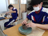 3年生の美術授業の風景です。伝統工芸の一つ「陶芸」にチャレンジしています。粘土と向き合いながら器などの作品制作に励んでいます。創造的な作品に仕上がるでしょうか!?