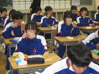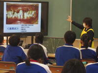 今日は、1年生が歯科健康教室を行いました。歯科衛生士の方を講師にお招きし、むし歯と歯肉の病気について学ぶとともに、ブラッシング方法について指導を受けました。松浜中生徒の一人平均う歯(むし歯)数は、0.23本と市や県の平均より良い結果であることが保健室入口の脇に掲示されています。大切な歯です。健康を維持しましょう。