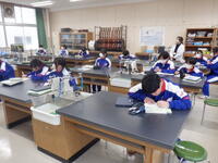 2年生の理科の授業の様子です。今日は、オームの法則を学習していました。昨日の実験結果をまとめたグラフから、電流(A)と電圧(V)が比例の関係にあることを学びました。皆、真剣に考えています。