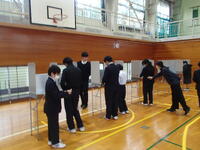 1年生の体育「剣道」の様子です。「礼に始まり礼に終わる」相手を尊重し敬意を示すという武士道の精神を学んでいます。柏崎市剣道連盟から2名の講師をお招きして、剣道の作法や技能を教わりました。