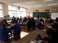 3年生の教科テスト(英語)の様子です。真剣にテストに向かう姿から、3年生の気迫が伝わっています。ゴォーと音を立てて校舎の窓ガラスを揺らす強風に全く動ぜず、集中して取り組んでいました。