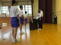 集会では、新人大会の表彰式が行われ、各部の健闘を全校生徒で称えました。