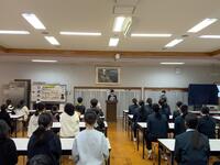 当日はご多用の中、近藤教育長様にご来校いただき、児童・生徒のこれまでの努力をねぎらうとともに、今後への大きな励みとなる温かいお言葉を頂戴しました。続いて行われた代表児童生徒による感想発表では、綾子舞に向き合ってきた日々の学びや成長が率直な言葉で語られ、会場は深い感動に包まれました。記念品の授与の後には、綾子舞保存振興会の坂井会長様から、心のこもった感謝のお言葉をいただき、新道小学校・南中学校の児童生徒にとって、まさに大きな節目となる意義深い式となりました。