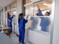 一年間、毎日を過ごしてきた校舎や教室への感謝の気持ちを胸に、生徒たちは普段の清掃では手が届きにくい場所まで丁寧に磨き上げました。窓や廊下、机や椅子の一つひとつにまで心を込め、校舎全体が見違えるほど美しくなるほどの熱心な活動となりました。