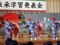 指導者の方、保護者、小学生が見守る中、伝承学習部の生徒たちは日頃の練習の成果を発表していました。