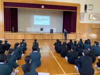 24日(火)1限の学級活動の時間に、JAえちご中越様の温かいご厚意により、卒業生へ「難関突破米」をご寄贈いただきました。激励のお言葉とともに贈呈式を行い、生徒たちは受検に向けて決意を新たにしました。