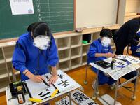 また、国語では書道が始まりました。今年の課題は1年生「平和の光」、2年生「目標達成」、3年生「初志貫徹」です。