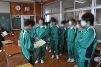 三送会では、校舎のいろんな部屋を使って、縦割班によるミッション達成ゲームを行いました。また、思い出のスライド上映では、昔の姿に歓声が上がっていました。くす玉割りやプレゼントの贈呈があり、最後に3年生からお礼と激励の言葉があり、和気藹々とした時間でした。