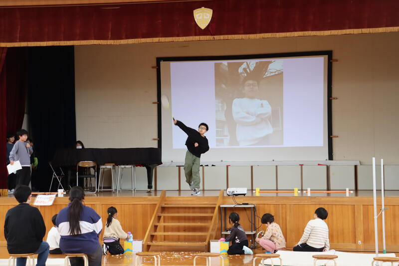 3年生は、6年生に招待状を渡し、当日は6年生がステージから登場して特技を披露する演出をしました。そしてポーズを決める6年生を紹介しました。