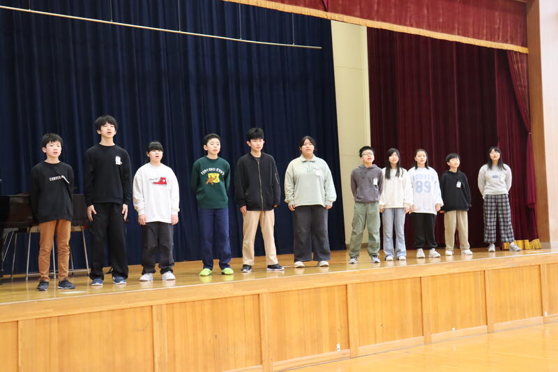 卒業式で歌う「旅立ちの日に」を初めて全校で合わせました。きれいな歌声が体育館いっぱいに広がり、うっとりしました。