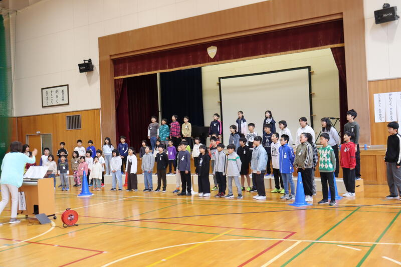 2回目の全校音楽練習です。今日は音の強弱に気を付けて練習しました。伴奏と指導の抜群のコンビネーションが子どもたちの歌声を支えています。