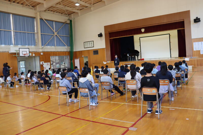 地震想定の避難訓練を昼休みに行いました。非常ベルと放送ですぐに身を守る行動ができました。学校の裏山が崩れる恐れがあるということで、学校前の県道へ二時避難しました。教室に戻って振り返りを行いました。「自分の命は自分で守る」ということを再確認しました。