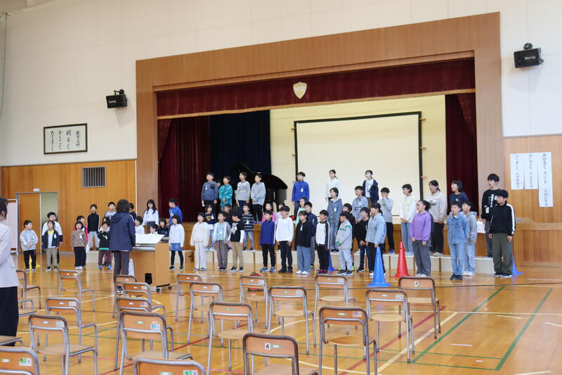 10月25日(土)の学習発表会まであと3日です。全校合唱「変わらないもの」の全校練習も3回目。歌詞の意味が伝わるようやさしく歌うところ、ボリュームを出すところを確認して練習しました。さらに歌声がブラッシュアップしました。