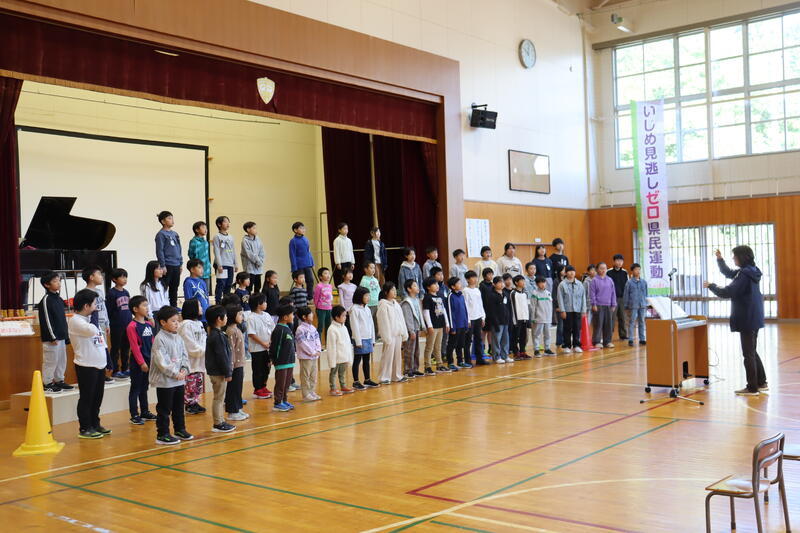 学習発表会に向けて、全校での練習が始まりました。曲目は「かわらないもの」です。子どもたちのやさしいきれいな歌声に体育館全体が包まれ、朝からとても幸せな気持ちになりました。