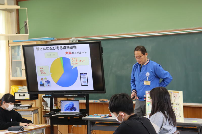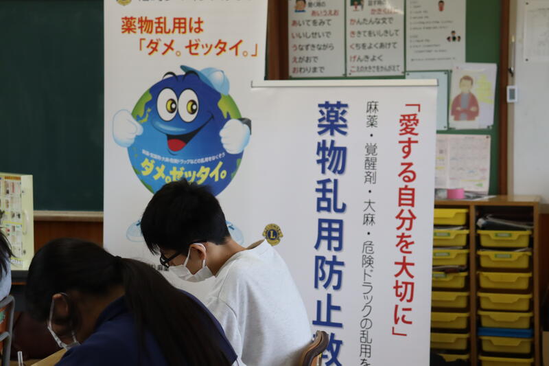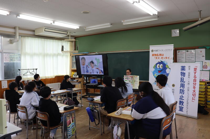 柏崎ライオンズクラブの方々を講師にお迎えし6年生を対象に実施しました。薬物とは何か、なぜ薬物はいけないのか、誘われた時の断り方等、サンプルや動画を用いて教えていただきました。