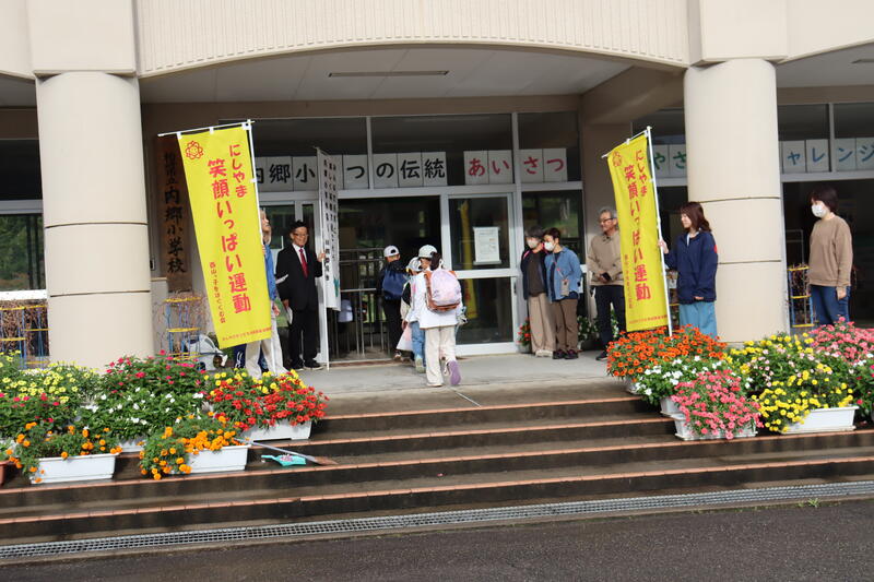 今日からあいさつウィークです。10名ほどの地域の方、保護者の方からボランティアでご協力いただきました。子どもたちのあいさつの声がいつもの何倍も大きくなりました。曇り空がパッと晴れて、気持ちのよい朝になりました。皆様ありがとうございました。
