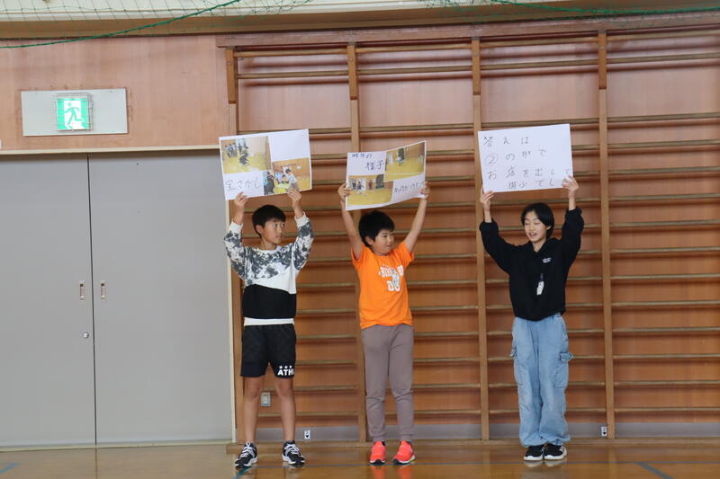 11月13日(木) 5年生二校交流活動 投稿日時 : 11/14 サイト管理者 カテゴリ: 二田小学校におじゃまして交流してきました。グループごとに自己紹介をした後、それぞれの学校での活動をクイズにして出し合ったり、助け鬼をしたり、バドミントンや卓球をしたり、ドッジボールをしたりしました。思いっきり体を動かして心もほぐれ、1つの学級であるかのように見えました。